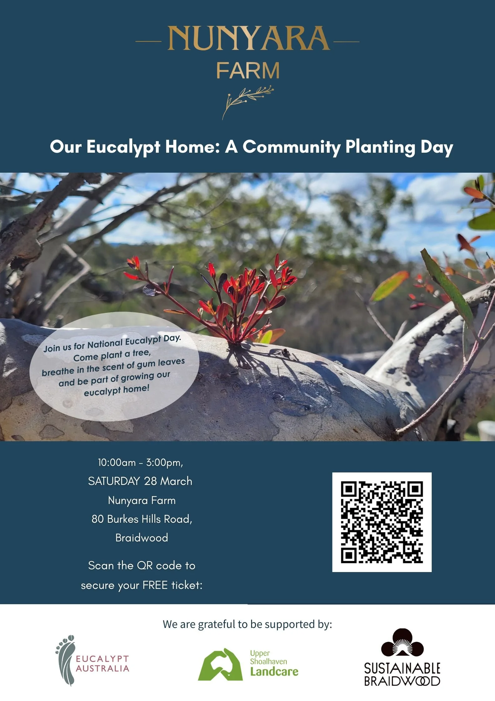 Come plant a tree, breathe in the scent of gum leaves and be part of growing our eucalypt home!